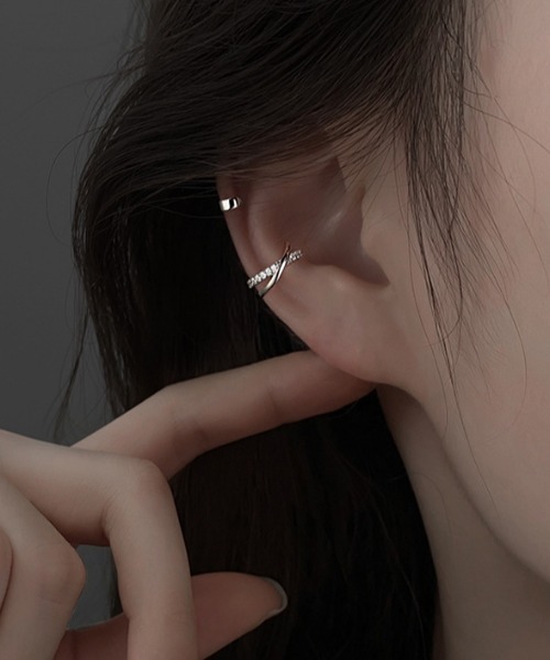 イヤーカフは、耳の際に装着するだけで、ピアスのようなつけ心地が楽しめます。