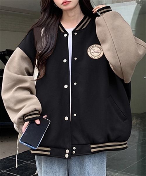 ワッペンロゴ刺繍、配色切り替えもインパクトがあり、スタイリングを盛り上げてくれそう♪