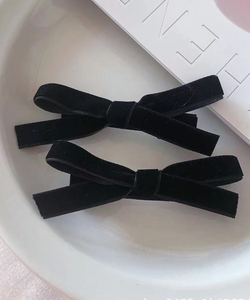 ベロア ヘアクリップ リボン 華奢 韓国 韓国ファッション