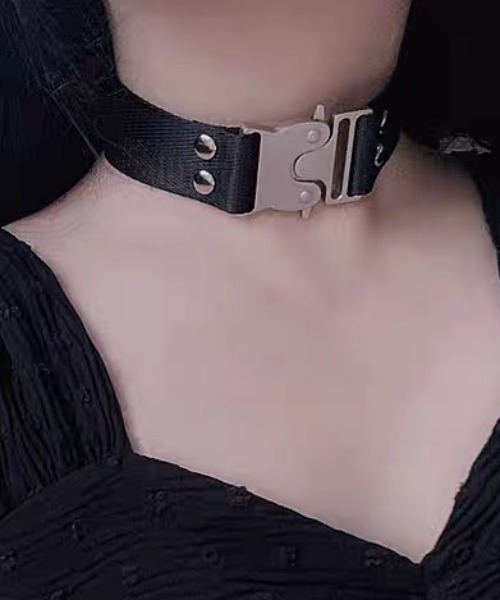 バックルデザインが特徴的なシンプルなチョーカー。