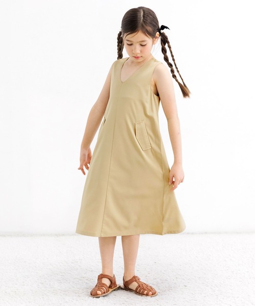 インナー次第でロングシーズン使える、Vネックノースリーブワンピース。
