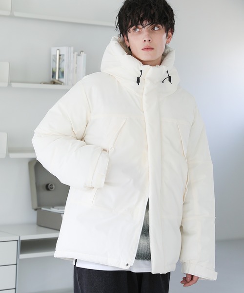 身幅を広く取ったビッグシルエットが今っぽく、存在感のある1着。風の侵入を防ぐスタンドネック仕様のフードや、比翼仕立てのフロントジップ、袖口のストラップなど、寒さを防ぐためのディティールにも拘って作られています。