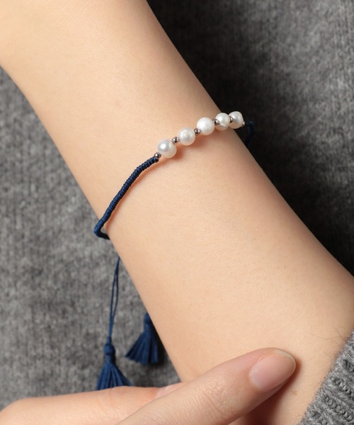 ミサンガ風のブレスレットデザインでカジュアルに身に付けやすいアイテム。