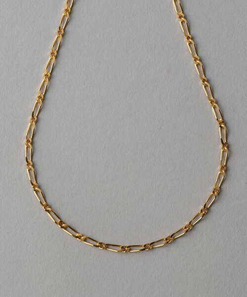 2種類のコマをねじるように繋ぎ合わせたフィガロチェーンは、程よいボリュームで、洗練されたデコルテに。