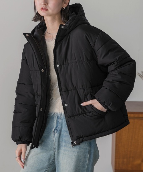 カジュアルになりがちな中綿コートですが、フェミニンなセットアップやワンピースなどにも合うのでコーデの幅が広がります