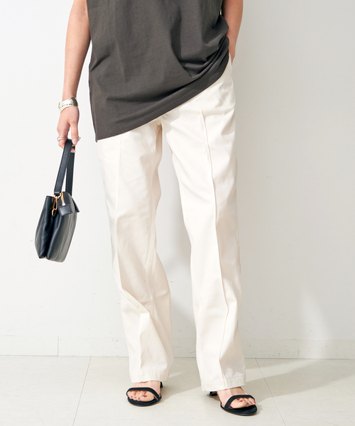 レングスもフルレングスなので、フラットシューズで裾で溜まる感じで着ていただいても今っぽく着こなせますし、ヒールできれい目にも。ロールアップしてもこなれ感があります。