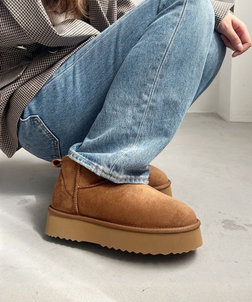 あたたかい 柔らかい ふわふわ 冬 秋 寒波 風 スエード ボリュームソール 美脚 細見え 華奢 ミニスカート デニム パンツ ミニ丈 ボア ボアブーツ