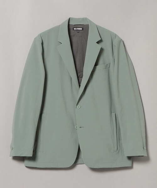 オン・オフ対応可能な1着耐摩耗性に優れる『CORDURA(R)』糸を使用した、撥水2WAYストレッチナイロンのライトジャケット。春夏シーズンに嬉しい、自宅で手洗い可能なイージーケアアイテム。背抜きメッシュ裏地部分にコンパクトに収納でき持ち運びも便利です。シェイプのないボックス型シルエットを採用したノーベントモデル。左胸に箱ポケット、袖口は1つボタンの本開き、3面体切り替えのフロント側シームにはベンチレーション用のコンシールファスナーを配し、開閉して衣服内の蒸れをコントロールできます。手を入れやすいファスナー付き腰ポケットが程よいカジュアル感をプラス。ドレスコードのあるゴルフ場までの移動や、ラウンド予定のある出張にもおすすめです。