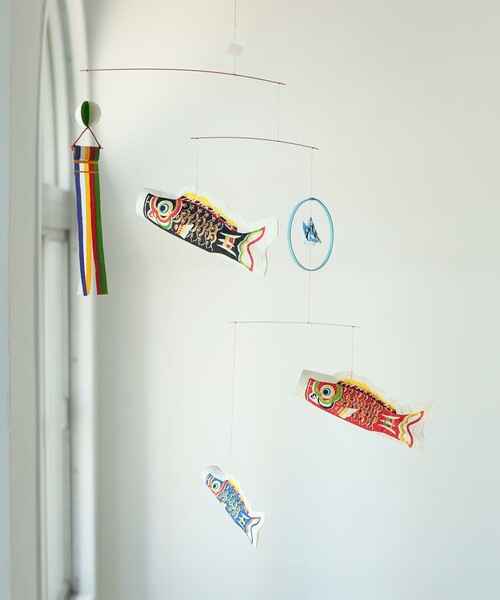 贈り物にも!ゆらゆら揺れる、鯉のぼりモビール良質な手漉きの和紙を1つ1つ丁寧に染めあげた鯉のぼりモビール。 3匹の鯉が空中をゆらゆらと優雅に泳ぎ、色鮮やかな型染の鯉は見ているだけで楽しめます。 リビングや子ども部屋にお部屋のアクセントとして取り入れてみるのはいかがでしょうか。