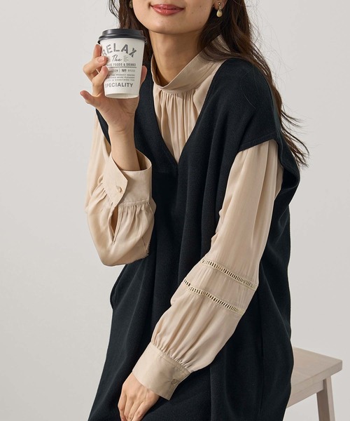 「ロングベスト」で引き締めて。ボリュームワンピを今どきレイヤードに