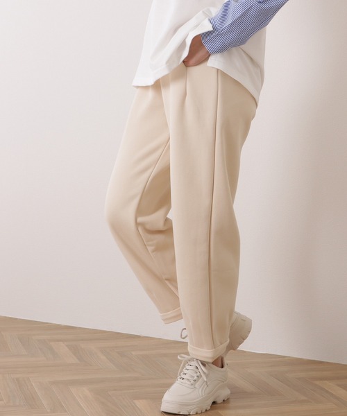 裏起毛素材であたたかにおつくりした、イージーパンツ。