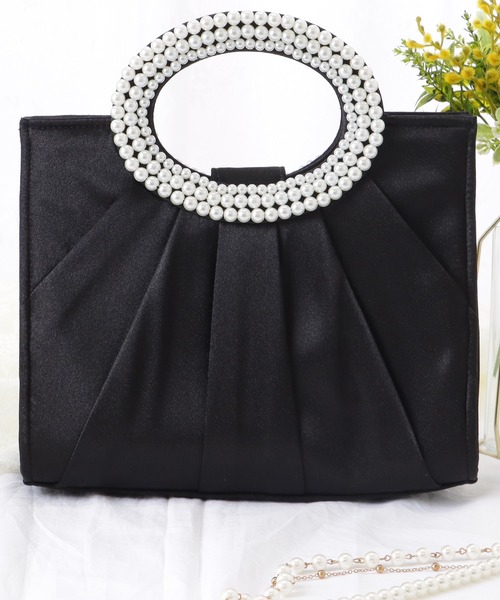 アクセントにもなっているハンドル部分は、大小のイミテーションパールを贅沢に組み合わせることで、グッと華やかな雰囲気に。