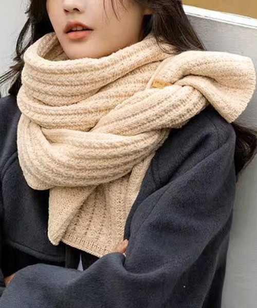 秋冬ファッションのワンポイントにしたいふっくら編み込まれたニットマフラーです