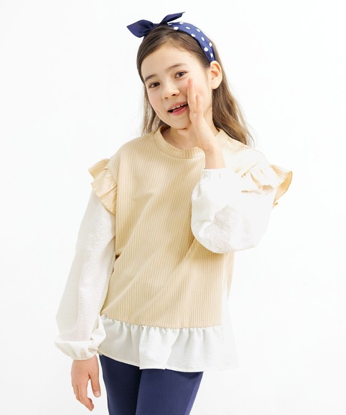 リブ地のベストとシャツを重ね着したかのようなドッキングデザイン。