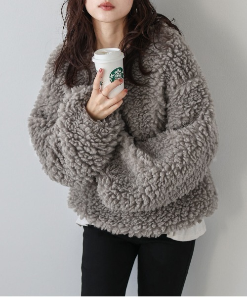ビッグシルエットボアプルオーバー1枚で存在感のある丸いシルエットは