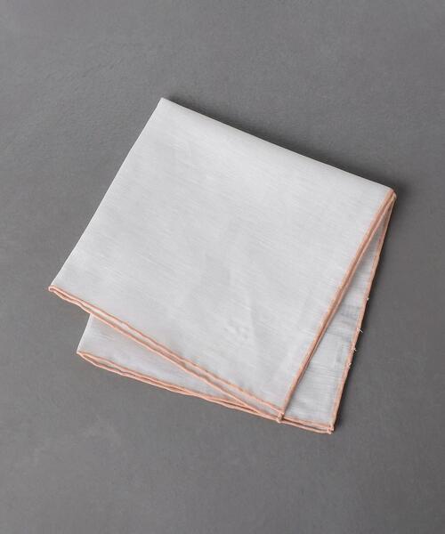 幅広く使えるシンプルなポケットチーフシンプルながらも縁のカラーリングがアクセントとなるポケットチーフ。