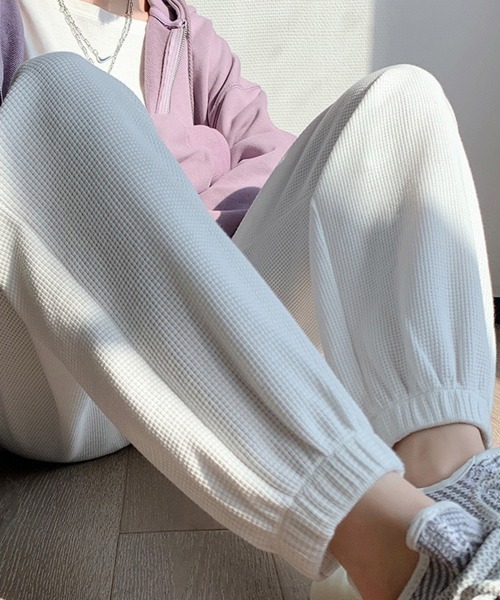 凹凸感&立体感のあるワッフル生地で仕上げたナチュラルな風合いのアンクル丈ジョガーパンツ