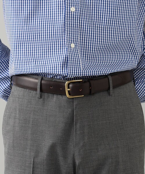 腰回りをエレガントに演出インラインからバックル、ベルト幅をやや太く変更した別注ブライドルレザーベルト。手染め後、獣脂ワックスで仕上げられた滑らかな質感と使用していくほどに味わい深く変化する色味が魅力。レザーライニングが付属した腰回りをエレガントに演出する1本です。