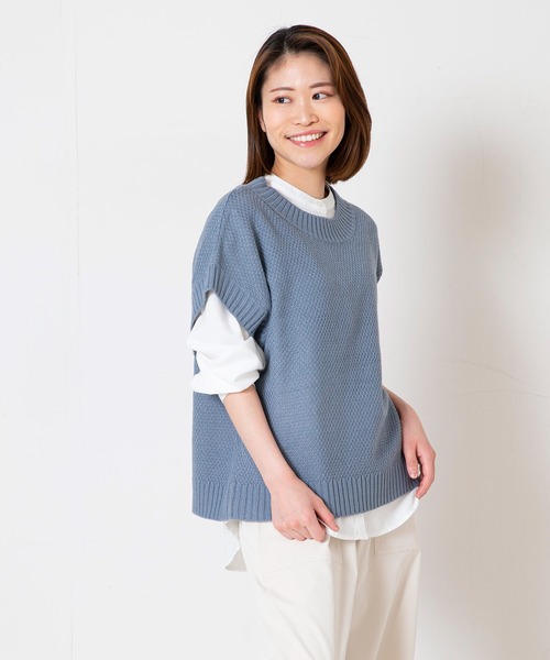 ニットベストとインナーブラウスのアンサンブル商品です。