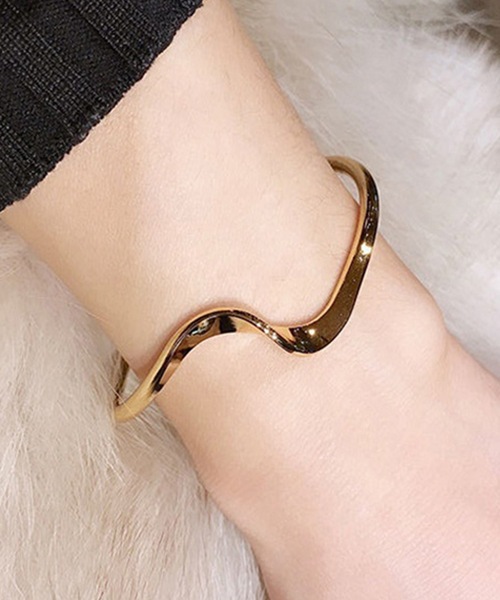 ウェーブ バングル ブレスレット シルバー ゴールド ピンクゴールド シンプル 華奢 韓国 韓国ファッション