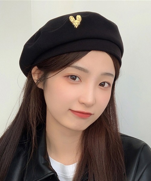 レトロ 韓国ファッション 飾り ハートデザイン おしゃれ ハット カジュアル シンプル 大人 トレンド感 可愛い