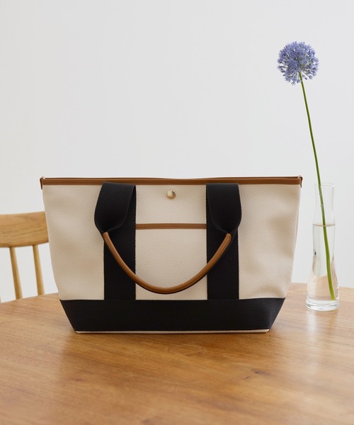 トートバッグの中で迷子になりがちなスマートフォンやICカードなどの小物の収納に便利な外ポケットも設計。
