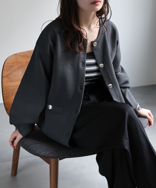 適度に肉感があり、カーディガンとジャケットの中間の羽織りとして着用できます。