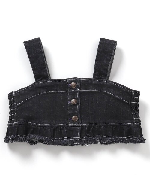 BREEZE(ブリーズ)のベスト・ジレ「デニムフリルビスチェ」は、手頃な価格とアメカジテイストを取り入れた大人顔負けのデザインが人気!これ一枚でいつものコーディネートがワンランクUP!