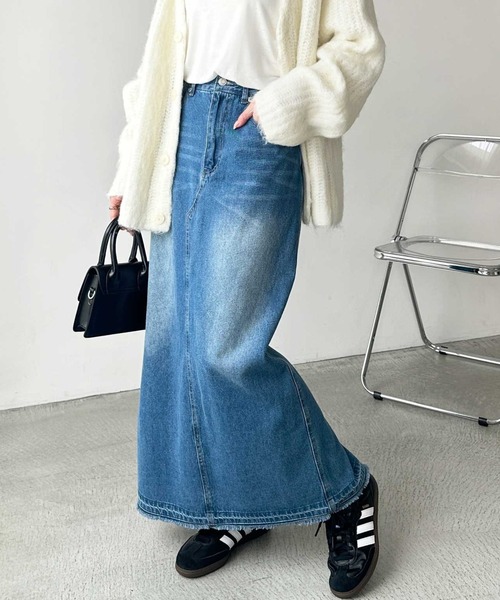タイト感を抑えたIラインシルエットのデニムスカート。