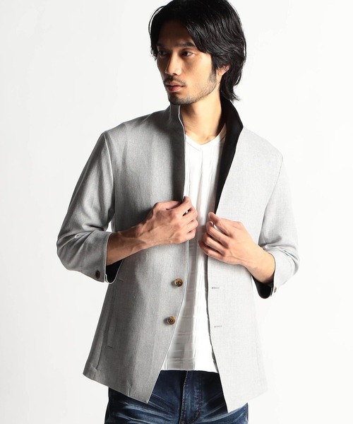 7分袖、スタンドカラーのカバーオールジャケットです。衿は通常よりも低めの設定にする事でスッキリとした印象に。身返しと衿裏を共地の配色にする事でアクセントにしております。同素材でパンツ「メーカー品番4165-5105」を展開しておりますので、セットアップでのスタイリングもおすすめです。