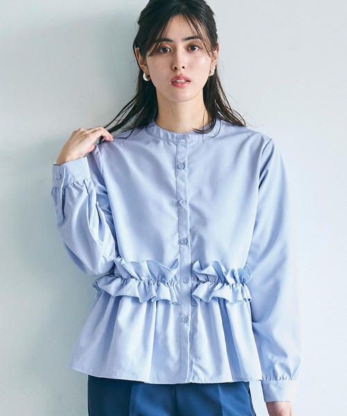 トップス ホイップ フリルブラウス シャツ クルーネック 羽織り フリル きれいめ ふんわり ギャザー ウエストフリル 25ss コカ COCA coca COCA coca