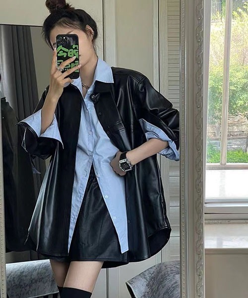 PUレザー ミドル丈シャツ
