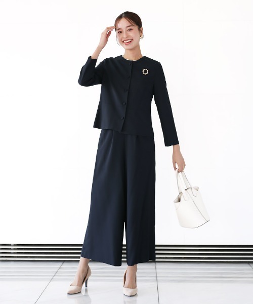 慶事・弔事で使える!ペプラムジャケット&ワイドパンツ2点セット■ WHITE JOOLA オリジナル ■