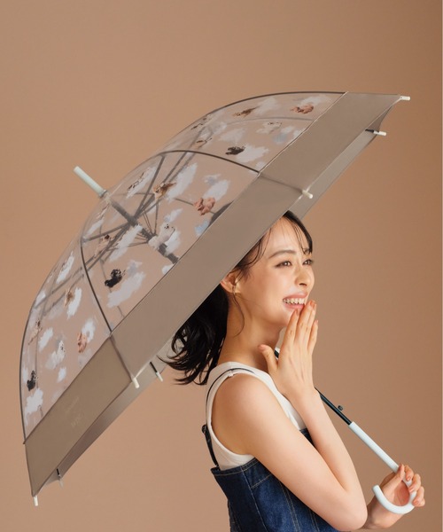 ビニール傘 かわいい 可愛い ブランド ホワイト 白 ベージュ ジャンプ式 犬 ワンちゃん 飛行犬 コラボ