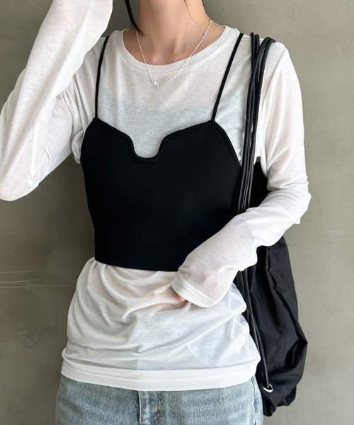 フロントスリットのデザインが印象的なキャミニットビスチェ。