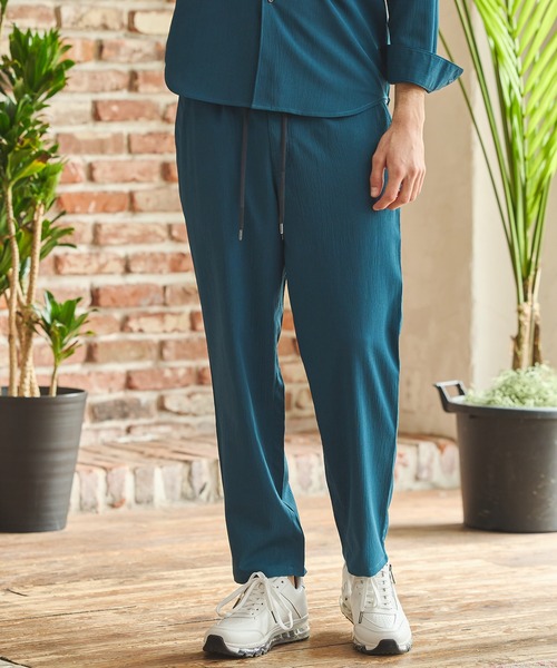 楊柳生地を使用したイージーパンツ。