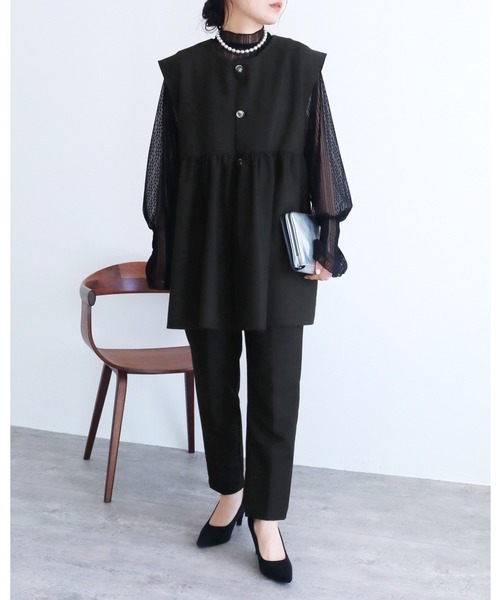 \大人かわいいペプラムデザインのベストときれいめテーパードパンツのセット/