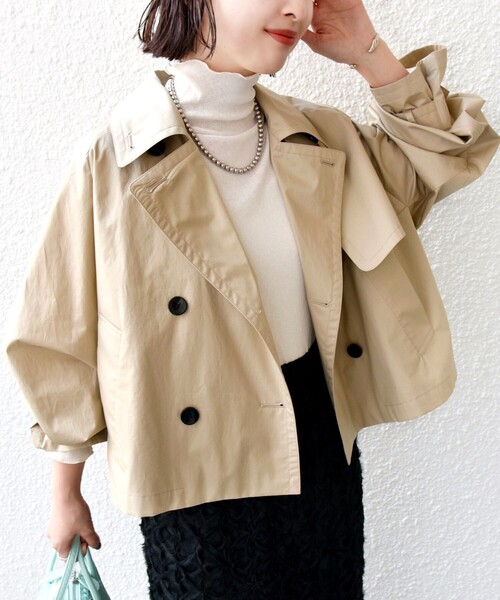 袖の中間に入れた切り替えで膨らみを出し、前振りにしたこだわりのシルエットが、こなれ感を演出してくれます。