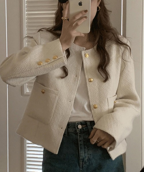 ツイード生地を使ったシックな風合いに心躍るジャケット。
