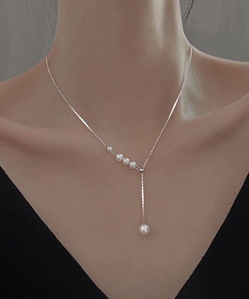 繊細なチェーンに揺れるパールが、上品な輝きを添えるY字ネックレス。