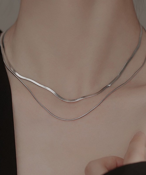 ダブルレイヤー 2連 スネークチェーン ネックレス シルバー ゴールド シンプル 韓国 韓国ファッション