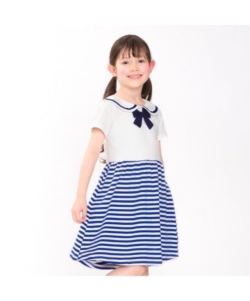 スカート部分がボーダー使いの、セーラーワンピースです。