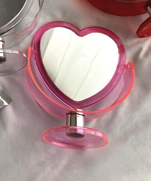 ハート型のくるくる回る両面卓上ミラー♡