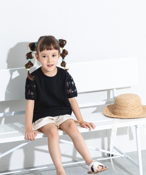 柄のチュールデザインをコーディネートの主役に、シンプルなスカートやパンツと合わせてお出かけを楽しんで頂きたい一枚です。