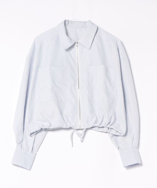 先染めストライプの素材感も魅力のシャツジャケット。両サイドの大きなポケットが印象的。