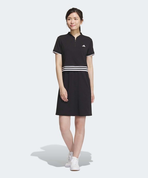 【アディダス公式ショップ】リサイクル素材を一部使用した、高機能ゴルフワンピース。快適でリラックス感のある、アディダス ゴルフワンピース。バックナインを終えてもドライな爽快感が続く、優れた吸湿性を発揮するAEROREADYシリーズ。汗をかきやすい部分の通気性を高める背面のメッシュパネルと、しゃがんだり身体をひねったりするときにカバー力を発揮するお揃いのインナーショーツを装備。動きやすくフレッシュな気分でティーオフから最終パットまで集中力を保てる、一日ゴルフを楽しむときにぴったりのウェア。