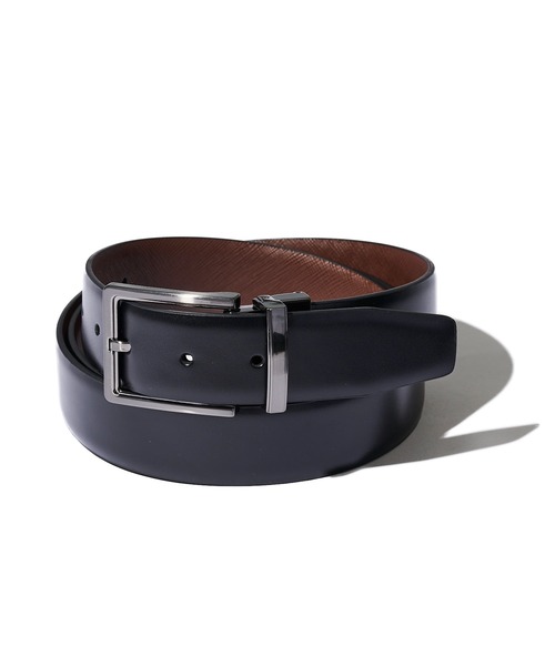 バックル部分にブランドロゴが取り入れられ、スーツスタイル、カジュアルシーンにマッチするベーシックなレザーベルト。