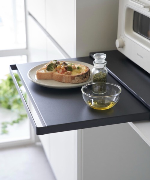家電下に便利な作業スペースができるキッチンスライドテーブル