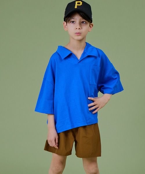 半袖Tは胸元に大きなパッチポケットつき。襟元はスキッパーデザインでスッキリとした着こなしを楽しめます。