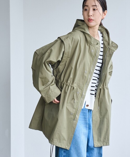 フード・袖が取り外せる3way仕様 軽い着心地の着回し万能アウター■デザインモッズコートとしてもベストとしてもマルチに使えるスプリングミリタリーコート。